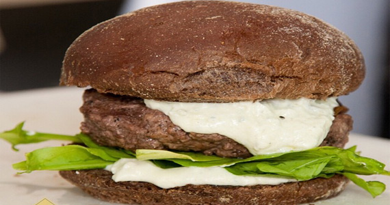 - A Hambuergueria Meat Chopper traz para o domingo "O Blue", hambúrguer com carne de 180 gr., gorgonzola, cebola caramelizada, rúcula e no pão preto.