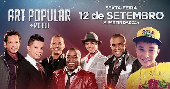 Na sexta-feira 12 de Setembro, o Santa Aldeia, localizado na Vila Olímpia, embala a noite ao som do Grupo Art Popular no repertório sucessos como Lugar Lindo, Temporal, Pimpoljo, Eternamente Feliz e outros. A noite também conta com os sucessos de MC Gui no repertório Sonhar, O Bonde Passou, Beija ou Não Beija, Principe da Ostentação, Vai No Cavalinho, Ela Quer e outros hits.