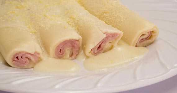 Canelone de queijo e presunto