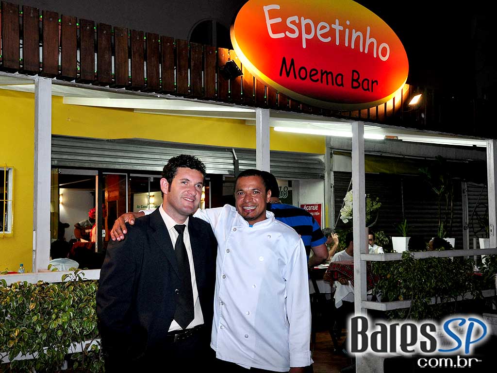 Na última quinta-feira, dia 29, aconteceu à festa de inauguração do Espetinho Moema Bar. A casa, situada em Moema é bonita e despojada. Na entrada, há um terraço com cerca de 20 mesinhas. Depois, há uma sala, também com 20 mesas, além de um balcão, com seis bancos. Em cada um dos ambientes há uma televisão de 42 polegadas. Ao fundo, um amplo salão, com 25 mesas e um telão.