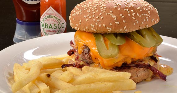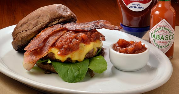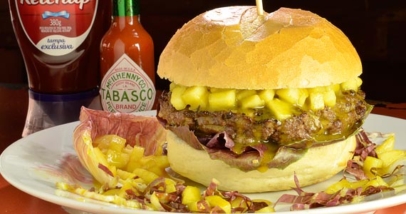 hambúrguer bovino com queijo camembert e geleia TABASCO® Chipotle. (R$ 22,00-Almoço e Jantar)
