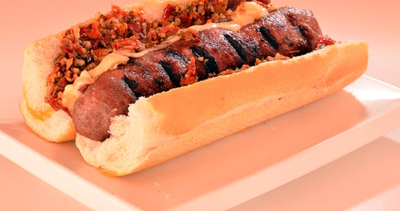 "all beef" Burger de 160g, no formato de linguiça, grelhado, coberto com provolone defumado e chimichurri, na mini-baguette.