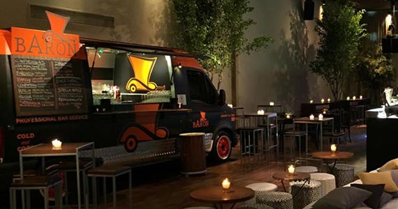 Somando ingredientes de qualidade, bons destilados e a expertise dos bartenders, o Baron Truck Bar tem o conceito de oferecer um serviço de qualidade e interação com o público, servindo coquetéis clássicos e de autoria dos barmen da marca. Na carta de drinks, os destaques são para o hypado Aperol Sprtiz, servido com Aperol e Chandon e outro clássico italiano, o Negroni.