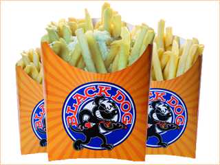 BLACK DOG. Leandro Neves batizou o empreendimento de BLACK DOG em homenagem à musica do Led Zeppelin. O logotipo, um desenho de um moderno cachorrinho com um ketchup nas mãos, passou a identificar o seu negocio.